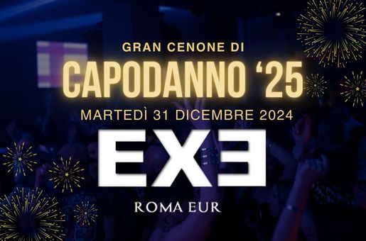 Capodanno Exe: Cenone, Live e Dj Set Capodanno Exe: Cenone, One man Show e Dj Set Prezzi Cena Platinum: 140€ Cena Gold: 125€ Cena Silver: 99€ Ingresso dalle 00.30: 29€ Tavolo Privee Disco: 65€ InfoInfo & Prevendite: 3445560958 3445137419 3347913858Location: ExeIndirizzo: Viale della Civiltà Romana, 1Città: RomaPREZZI 2025: TUTTI I PREZZI INDICATI SONO IN PREVENDITA Cena Platinum ore 20.30 costo 140€ p.p. comprensivo di: – Menu come indicato in basso – 1 bottiglia di vino ogni 3 pax – Show Musicale – Tavolo riservato tutta la notte – Brindisi di mezzanotte con 1 bottiglia di CHAMPAGNE ogni 4 pax – Dj-set Cena Gold ore 20.30 costo 125€ p.p. comprensivo di: – Menu come indicato in basso – 1 bottiglia di vino ogni 3 pax – Show Musicale – Tavolo riservato tutta la notte – Brindisi di mezzanotte con 1 bottiglia di Prosecco ogni 4 pax – Dj-set Cena Silver ore 20.30 costo 99€ p.p. comprensivo di: – Menu come indicato in basso – 1 bottiglia di vino ogni 3 pax – Show Musicale – Tavolo riservato fino alle ore 00.15 – Brindisi di mezzanotte con 1 bottiglia di Prosecco ogni 4 pax – Dj-set Ingresso dalle 00.30 costo 29€ comprensivo di: – Prosecco – Dj-set Tavolo Privee Disco (min 5 pax) dalle ore 00.30 costo € 65 p.p. comprensivo di: – 1 bottiglia di super alcolico ogni 5 pax – Dj-setVISUALIZZA MENU PESCE VISUALIZZA MENU CARNE Richiedi informazioni per Capodanno Roma 2024. Nome e Cognome (richiesto) Telefono(richiesto) La tua email (richiesto) Nome della location (richiesto) Note aggiuntive Acconsento alla vostra informativa sulla Privacy e Cookie Policy