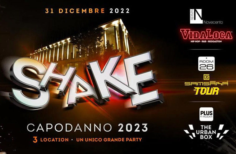 Shake è il format vincente del Capodanno “disco” a Roma. Tre location fra le più in voga della capitale (Spazio 900 – Room 26 – Plus Room) ospitano la notte più “ballata” dell’anno. Un ingresso unico con il quale entrare liberamente tra le location, immergendosi in atmosfere e sonorità diverse fra loro.