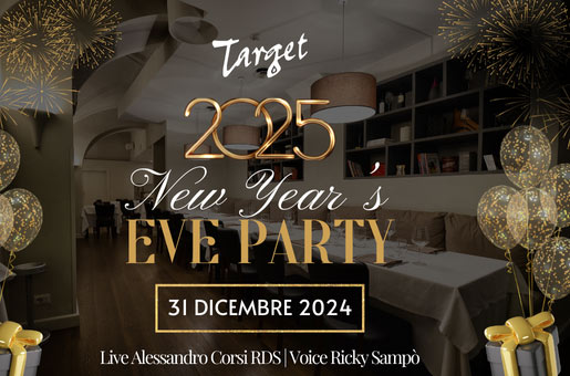 Per l’arrivo del nuovo anno, lo staff del Target propone cena spettacolo con un menù completo (anche per vegetariani), comprensivo di dolci natalizi, vino e spumante per il brindisi di mezzanotte.